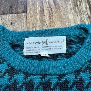 Peruvian Connection Alpaca Balloon Sleeve Houndstooth Teal/Black Sweater Medium