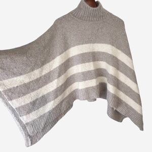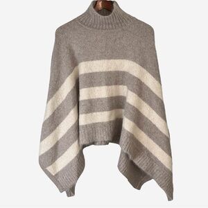 Peruvian Connection Alpaca Poncho Sweater Taupe Striped Snow Drift