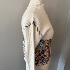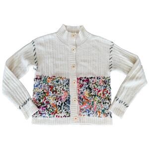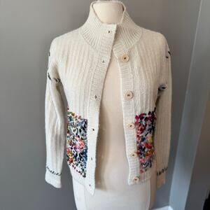 Peruvian Connection Alpaca Wool Multicolor Embroidered Artisan Knit Cardigan XS