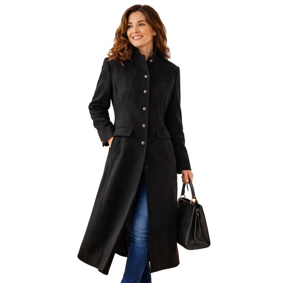 Experience timeless elegance with this Peruvian Connection long coat, crafted from a premium baby alpaca and wool blend. This sophisticated black coat delivers exceptional warmth, softness, and refined style for cold-weather occasions.