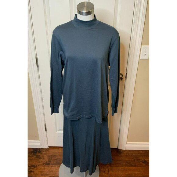 Peruvian Connection Bermuda Blue Mock Neck Top & Skirt 2 Piece Set, Size L, NWT!