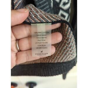 Elevate your style with this Peruvian Connection open-front knit cardigan sweater! This cozy cardigan features a stylish black and grey color combination. Perfect for layering, this sweater is a size XS and has a comfortable fit.