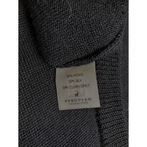 Peruvian Connection Black Wool Silk Cardigan Duster Midi Long Sleeve XL
