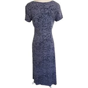 This is a stylish Peruvian Connection midi dress for women in size Medium. It features a beautiful blue floral pattern, short sleeves, and is made of a comfortable cotton blend material. The dress has a casual yet elegant style, perfect for various occasions. 92% Cotton 8% Lycra Measures approximately 18” between armpits Shoulder Measures approximately 50” long