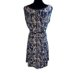 This stylish mini dress from Peruvian Connection features a sleeveless design with a scoop neckline, perfect for casual or work settings. The blue and cream color palette complements the A-line silhouette, offering a flattering fit and a touch of elegance.