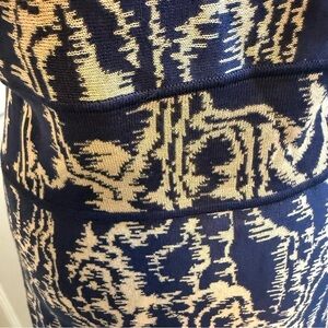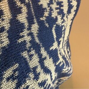 Peruvian Connection Blue and Cream A-Line Midi Sweater Knit Dress