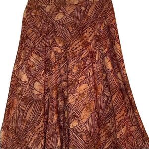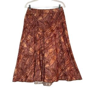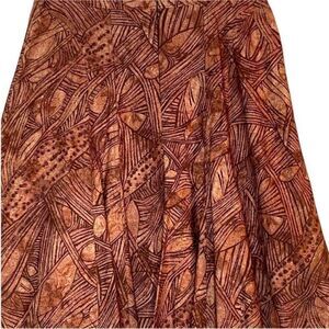 Peruvian Connection Brown Earthy Leaf Print A Line Midi Skirt | Size 6