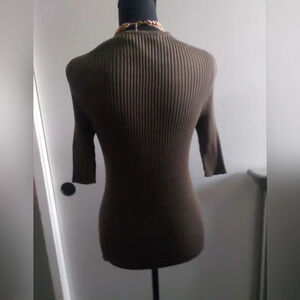 Elegant ribbed blouse. Features a deep V-neck. Half sleeves for a chic look.