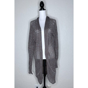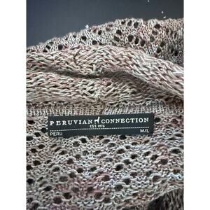 Peruvian Connection Cardigan Pima Cotton Open Knit Shawl BOHO Beige Duster Long