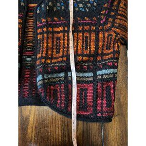 Peruvian Connection Cropped  Open Cardigan Sweater Wool Rainbow Stain Glass
