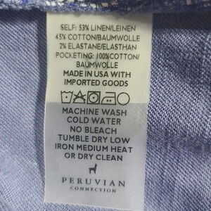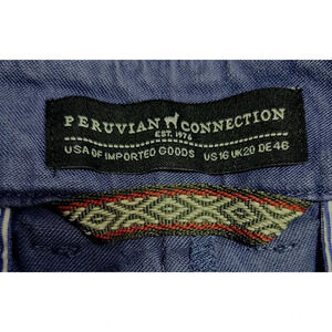 Peruvian Connection Cropped Pants Slacks Women's Size 16 Blue Casual Linen Blend