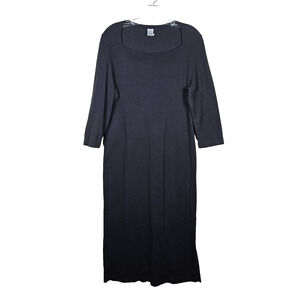 Peruvian Connection Dress Pima Cotton Midi Maxi Black Casual Minimal Stretch M