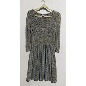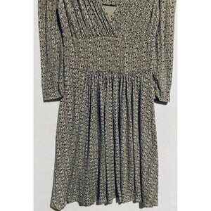 Peruvian Connection Dress Womens Medium Boho Floral Pleated Smocked V Neck