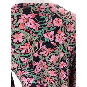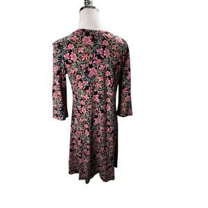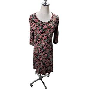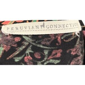 Peruvian Connection Dress Women's Size Small Black Pink Floral Pima Cotton Midi