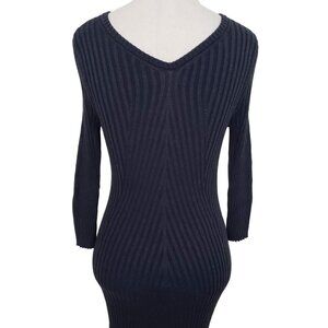 Peruvian Connection Dress Womens Size Small Blue Ribbed Knit 3/4 Sleeves Sheath