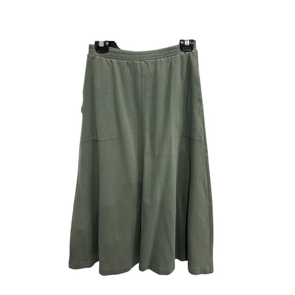 Peruvian Connection Elastic Waist Side Pockets Casual Midi Skirt Size S Earthy