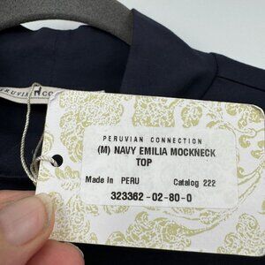 Peruvian Connection Emilia Mockneck Top woman’s size Medium Navy NWT
