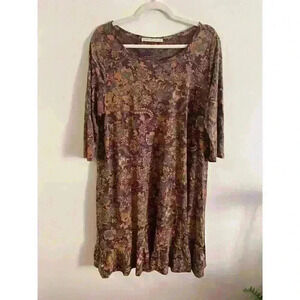 Peruvian Connection Floral Cabana Dress Women’s Sz L Pima Cotton Ruffle Pockets