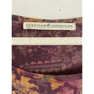Peruvian Connection Floral Cabana Dress Women’s Sz L Pima Cotton Ruffle Pockets. Condition is Pre-owned. Shipped with USPS Ground Advantage.