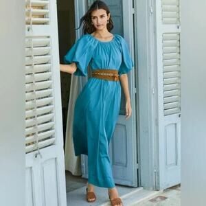 Peruvian Connection *In Black* Savannah Puff Sleeve Midi Dress Small