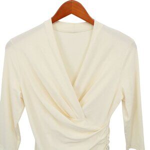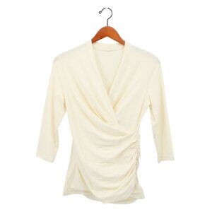 Peruvian Connection Ivory Faux Wrap Cyprus Ruched V-Neck Pima Cotton Top S M
