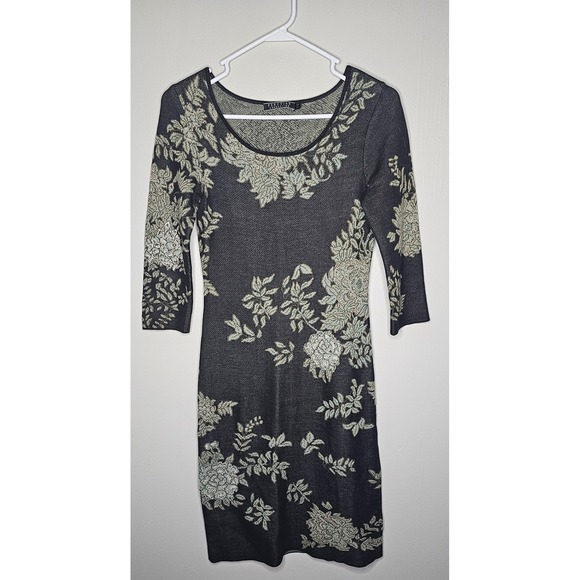 Peruvian Connection Kashmiri Pima Cotton Dress Gray Green Floral Jacquard XS