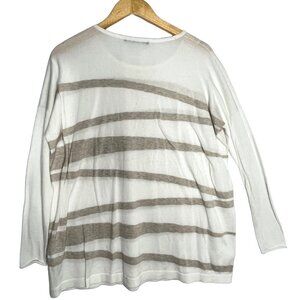 Peruvian Connection Knit Pima Cotton Striped Tunic Striped Cream Brown X-Small