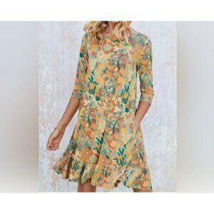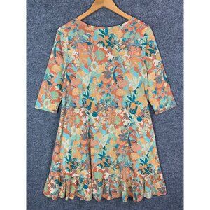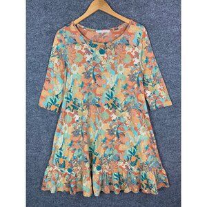 Peruvian Connection Lantana Dress Pima Cotton Long Sleeve Floral Women's M