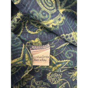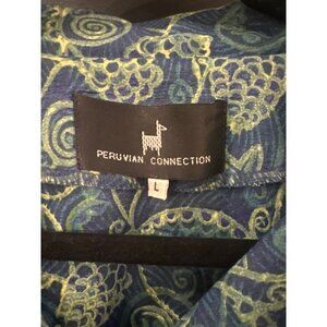 Peruvian Connection Long Sleeve Top Size Large Blue Green Swim Cover Up Relaxed