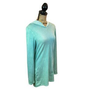 Peruvian Connection Long-Sleeve Lightweight Hooded Tunic Top Aqua Womens Medium