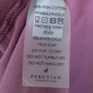Great preowned condition dark mauve pink 100% pima cotton V neckline shirt from Peruvian Connection. 3/4 length sleeves. Made in Peru. Lightweight and breathable. No flaws.
