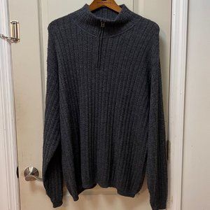 Peruvian Connection Men's XL 80% Baby Alpaca/20% Wool L/S Qtr Zip Sweater. Grey