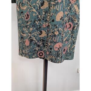 Peruvian Connection Mini Dress S Teal Green Long Sleeve Floral Shift Work Black