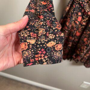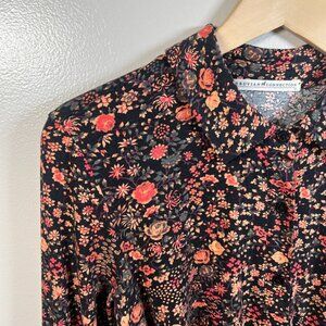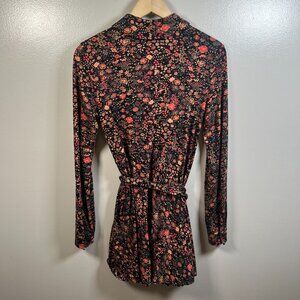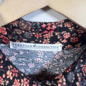 Peruvian Connection Mini Shirt Dress Size Medium Black Pima Cotton Floral Belted