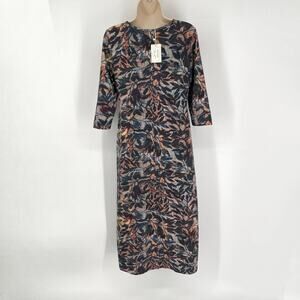 Peruvian Connection NEW Painted Vine Dress Sz M Multi 3/4 Sleeve Midi Scoop Neck