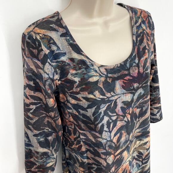 Peruvian Connection NEW Painted Vine Dress Sz M Multi 3/4 Sleeve Midi Scoop Neck