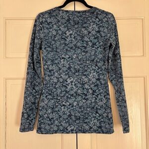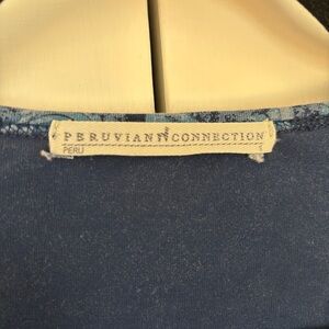 Peruvian Connection Navy Floral Print Long Sleeve Tee Shirt Size Small Organic