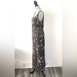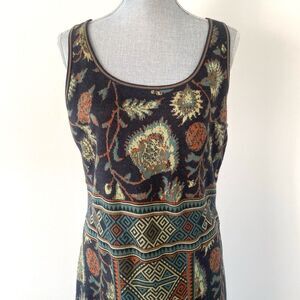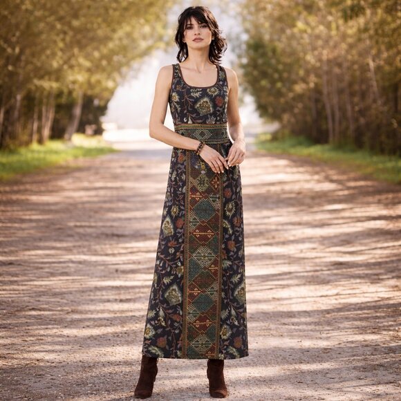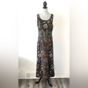 Peruvian Connection Navy Rustic Color Botanical Aztec Patterned Maxi Knit Dress