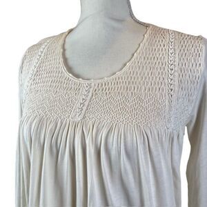 Peruvian Connection Nightgown Pima Cotton Ivory Hand Stitched Detail Medium