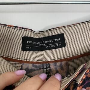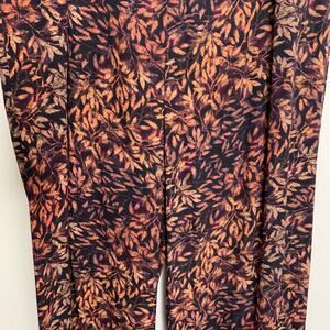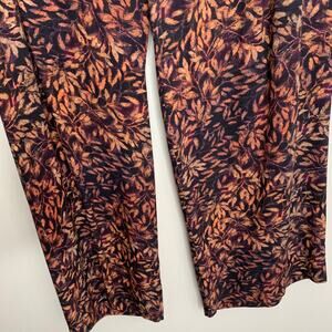 Peruvian Connection Pants Rust Leaf Print Black Straight Leg Mid Rise Pockets