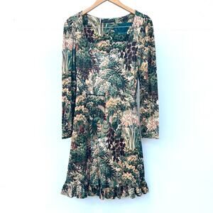 Peruvian Connection Pastorale Long Sleeve Foliage Green Dress Mini Small Pockets