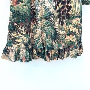 This Peruvian Connection Pastorale dress channels timeless bohemian elegance with its painterly forest print and romantic flounce hem. Crafted from ultra-soft stretch knit, it offers effortless movement and comfort while maintaining a sculpted fit. Perfect for fall layering, countryside weekends, or cozy gatherings, this piece blends artwear charm with modern versatility.