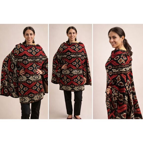 Embrace timeless Andean style with this Peruvian Connection poncho, crafted from 100% Pima cotton and featuring a striking geometric pattern. From Peruvian Connection's late 2000s collections, this versatile piece delivers warmth, texture, and cultural authenticity.