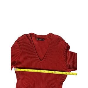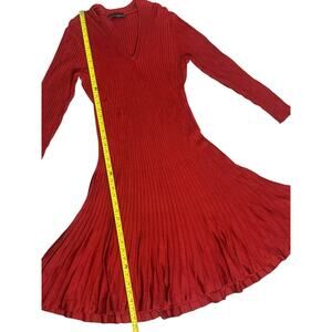 Peruvian Connection Pima Cotton Red Ribbed Long SLV Knit Fit Flare Midi Dress Lg