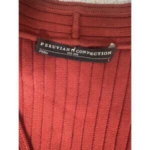 The Peruvian Connection Pima Cotton Red Ribbed Long Sleeve Knit Fit Flare Midi Dress in size Large is a versatile and stylish option for various occasions. Made from high-quality Pima cotton, this sweater dress features a pullover closure and a flattering fit and flare silhouette. The dress is in a solid red color with long casual sleeves, making it a classic and timeless piece perfect for the fall, winter, and spring seasons. With its breathable fabric and stretchy design, this dress is not only comfortable but also a staple in any woman's wardrobe, whether for a party, wedding, or casual day out.