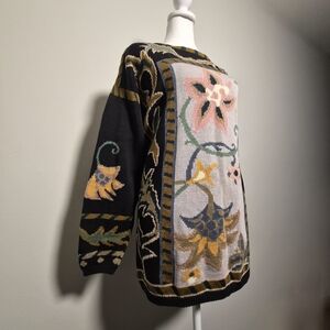 Peruvian Connection RARE Vintage 100% Pima Cotton Whimsical Floral Panel Sweater