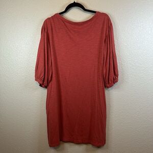 Peruvian Connection Red Orange Small Balloon Sleeve Mini Dress Pockets Casual