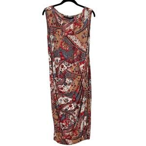 Peruvian Connection Red White Paisley Print Ruched Midi Dress Size Large