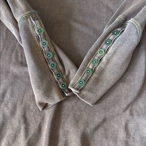 Hello, Are you selling twotops here,a brown and an orangish color both with buttons on the sleeves? If so, how much for both and the condition please. Thank you.