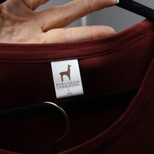 Beautiful Peruvian Connection two-piece set crafted from soft, luxurious Pima cotton. The set includes a scoop-neck 3/4 sleeve top and a matching A-line midi skirt in a rich rust red hue. Timeless, comfortable, and versatile for both casual and dressy occasions.